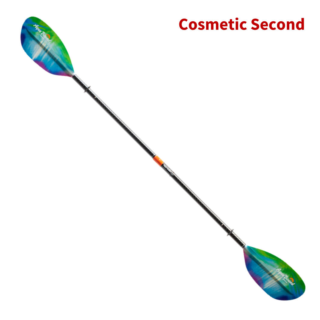 Before You Buy: As this paddle is a Cosmetic Second and reduced in price, Aqua Bound will not provide photo samples or pre-purchase information on the appearance of the paddle. In the event of an incorrect size purchase, Aqua Bound will accept returns within 30 days of purchase if the paddle is unused and void of wear. Customer is responsible for shipping the paddle back to Aqua Bound. Like all Aqua Bound paddles, this paddle comes backed with a two-year warranty against manufacturing defects. Note – returns or refunds due to personal preference on “imperfections” will not be honored.
